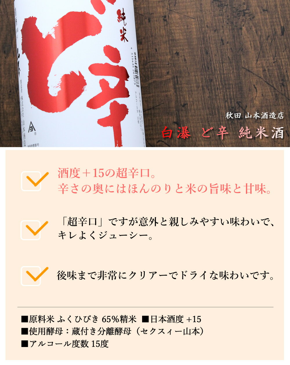 「ど辛」の名にふさわしい日本酒度+15の辛口酒。ほのかに青リンゴのような香りがあり、シャープな味わいながらバランスが絶妙。