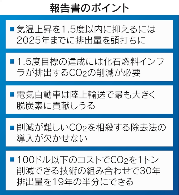 世界全体で50~55年には二酸化炭素(CO2)の排出を「実質ゼロ」にする必要性も強調しています。